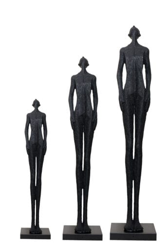 Series of “Looking Up” fiberglass statues in small, medium, and large sizes, each providing a contemporary artistic accent for modern decor.